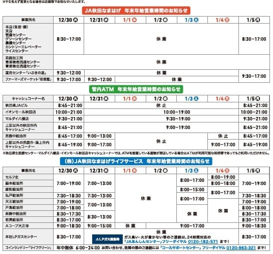 JA秋田なまはげからのお知らせ